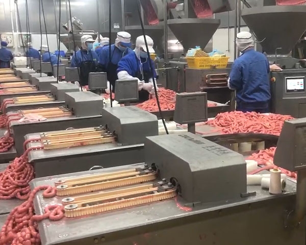 省肠衣:举例,日产2吨50mm重亲亲肠客户,双条扎线机节约肠衣:1200m/tX肠衣单价0.5元/t=600元/吨; 节约肠衣成本1200元/天,3.6万元/月,43.2万元/年;双条扎线机三个月内即可回本;