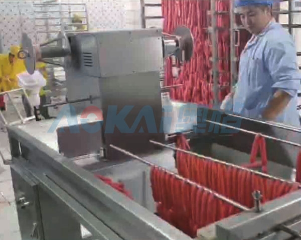 用于扎线工艺香肠拆剪,输送代替搬运,节省8~10人拆线。It is used for cutting and transporting sausages in the tying process, replacing transportation and saving 8-10 people in dismantling the thread.